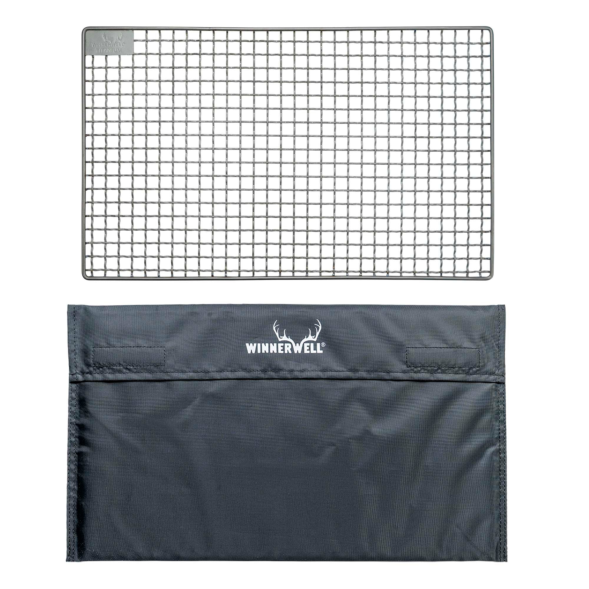 Crafted from ultra-lightweight and durable titanium, this grill net is the perfect companion for your basecamp cooking set up. Designed to be used on top of Winnerwell® Stainless Stoves, Fastfold Titanium Stoves, Flat Fire Pits and Backpack Stoves, this grill net is big enough to accommodate generous portions for solo adventures or group feasts.