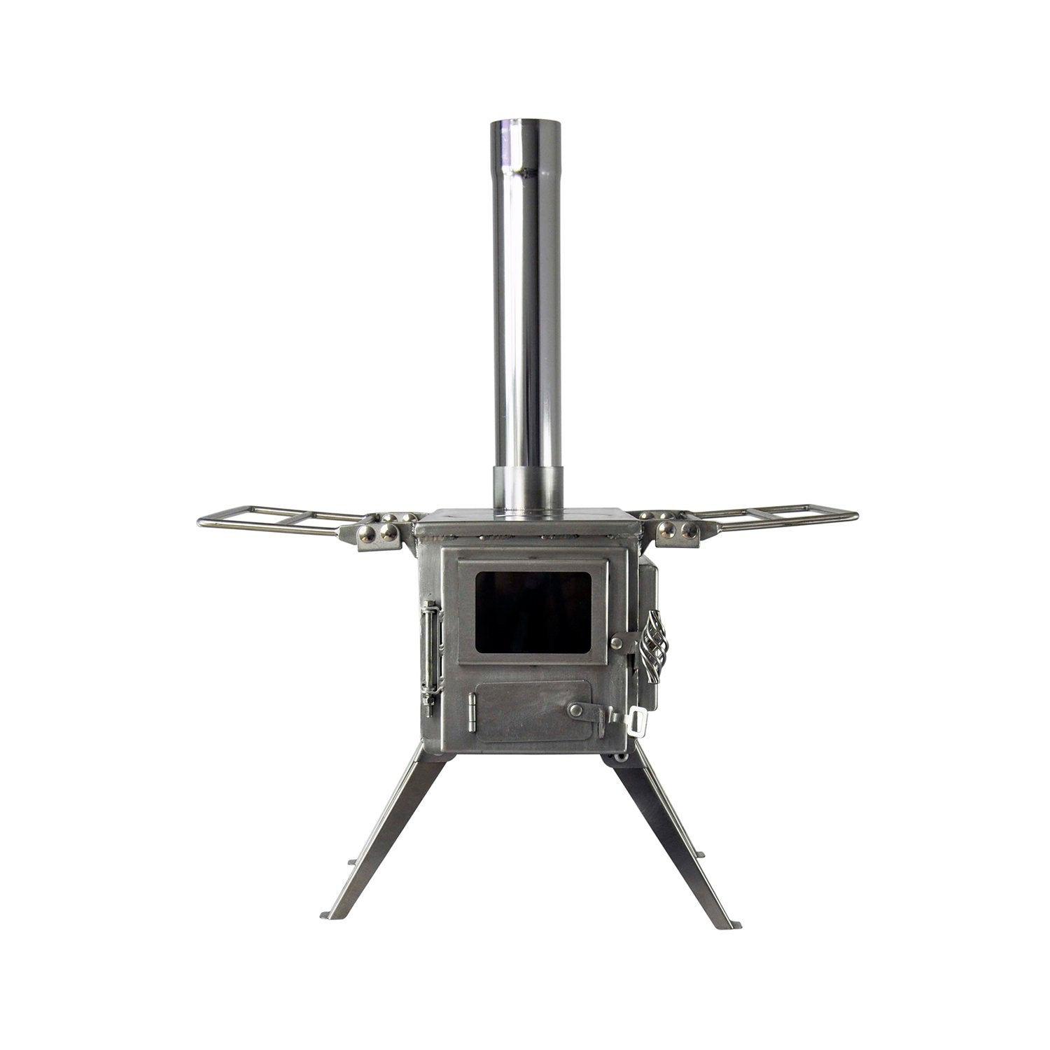 With a firebox that’s comparable in size to a shoebox, the Winnerwell Nomad View Small is a truly tiny and highly portable woodstove. The large side view window provides a view of the entire fire box and the stove features the same quality 304 stainless steel construction as larger Winnerwell stove models. In compatible tents and shelters with a smaller footprint and limited space (designed for one or two occupants), the Nomad Small is a reliable wood burning heat source.
