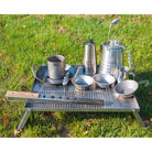 Perfectly sized to fit the Winnerwell XL Flatfold Firepit, the XL Flatfold Accessory Table elevates the Fire Pit off the ground and helps to contain any ash or embers that may escape the Fire Pit. This table is made from durable 304 stainless steel, folds flat for compact storage, and also functions as a utility table around camp. The XL Accessory Table is also a good choice for smaller size fire pits, providing extra space for cookware and camp tools.