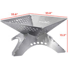 Made with durable and corrosion resistant 304 Stainless Steel, the Winnerwell XL Flatfold Fire Pit is an ideal solution for campfire containment, allowing campers to enjoy a campfire while eliminating the need for a permanent fire ring made of stones and leaving little trace when camp is packed up. This fire pit folds flat for compact storage and perforated design promotes airflow for an efficient burn. Add the Grill Grate and Charcoal Grate accessory for cooking utility (sold separately). We also recommend the use of a Winnerwell Fire Proof Mat for increased safety and leave no trace camping. Pair the XL Flat-Fold Fire Pit with the XL Accessory Table for a unparalleled camp fire solution.