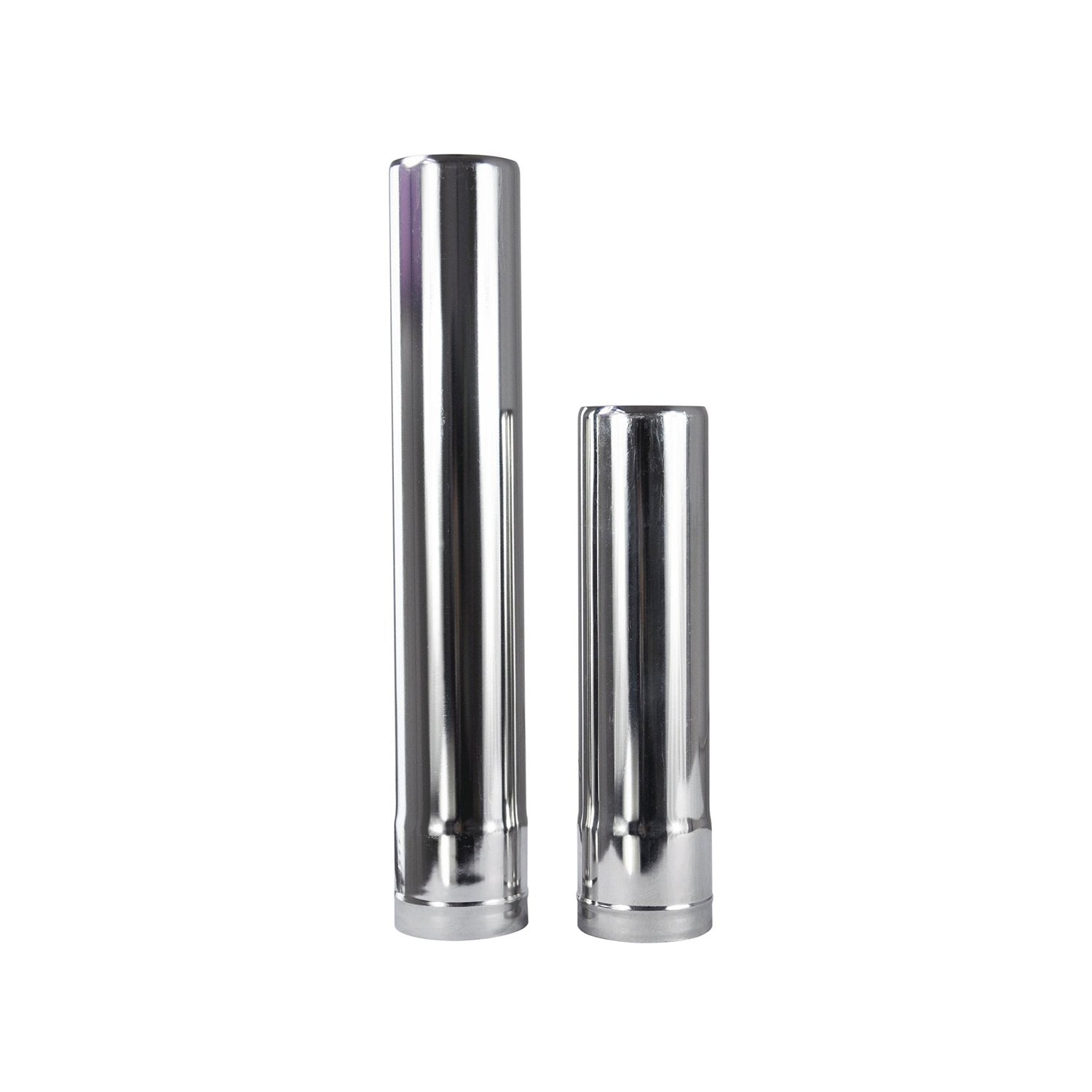 Compatible with medium size Winnerwell Stoves with 2.5 Inch diameter pipes, the Short Pipe accessory measures 7.1 inches long. Useful when just a little extra chimney pipe length is required to achieve the ideal exit point from your tent or shelter.